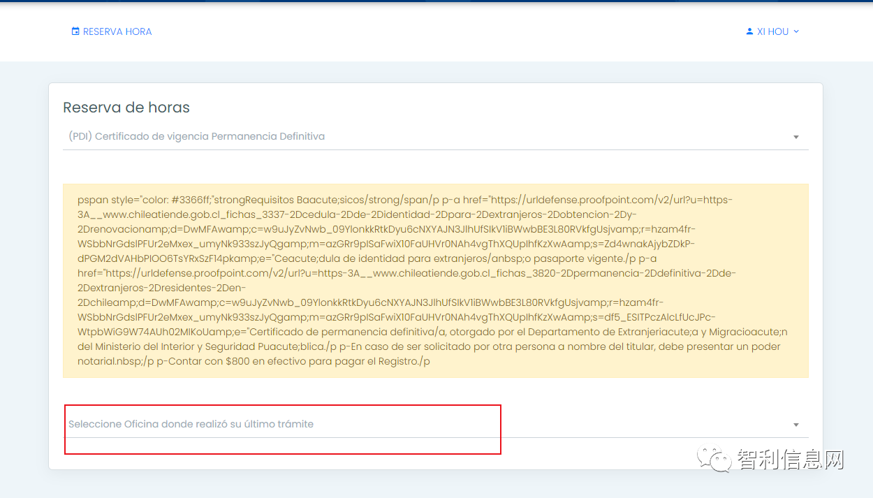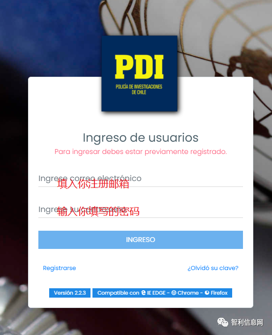 然后正式开始过程:www.pdichile.cl进入pdi网址