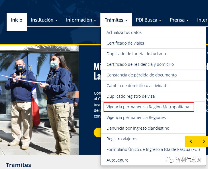 选择tramites 中的 VIGENCIA PERMANECIA REGION MERTOPOLITANA